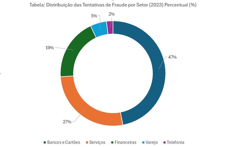 A seguir, veja como as tentativas de fraude se distribuíram entre os principais setores em 2023: